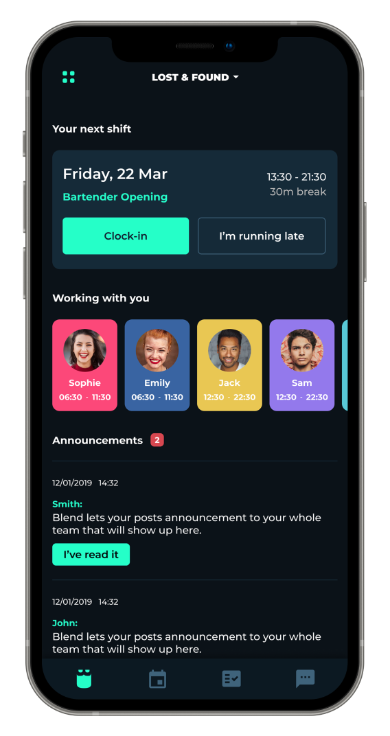 Blend includes a messaging feature, allowing managers and employees to send and receive messages within the app as one of its communication channels. With its modern user interface, this feature enhances quick and straightforward employee communication, making it ideal for time-sensitive or urgent matters. So, human capital management can better build employee schedules and communicate with staff whenever needed.